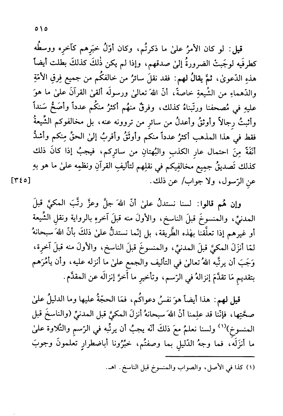المدني، والمنسوخَ قبلَ الناسخ، والأولَ منه قبلَ آخرهِ بالرواية ونقلِ الشَيعة