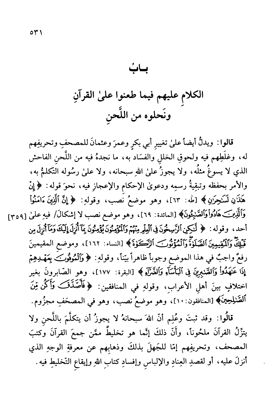 يتزلُ القرآنَ ملحُوناً، وأَنّ ذلكَ إئَما هو تخليط ممن جمعَ القرآنَ وكتبَ