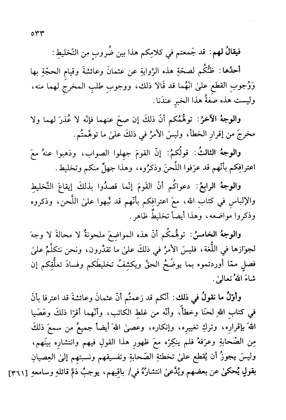 والإلباسِ في كتابِ الله، معَ اعترافِكم بأنّهم قد نبهوا على اللَّحن، وذكروه