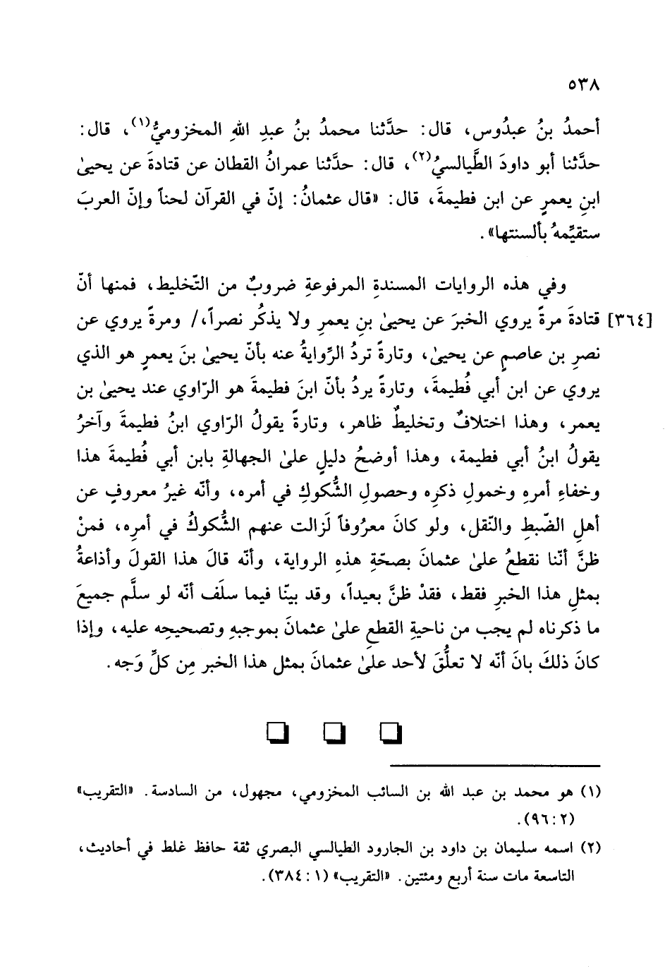 ظن أننا نقطعُ على عثمانَ بصحَّة ِ هذهِ الرواية، وأنه قالَ هذا القولَ وأذاعهُ