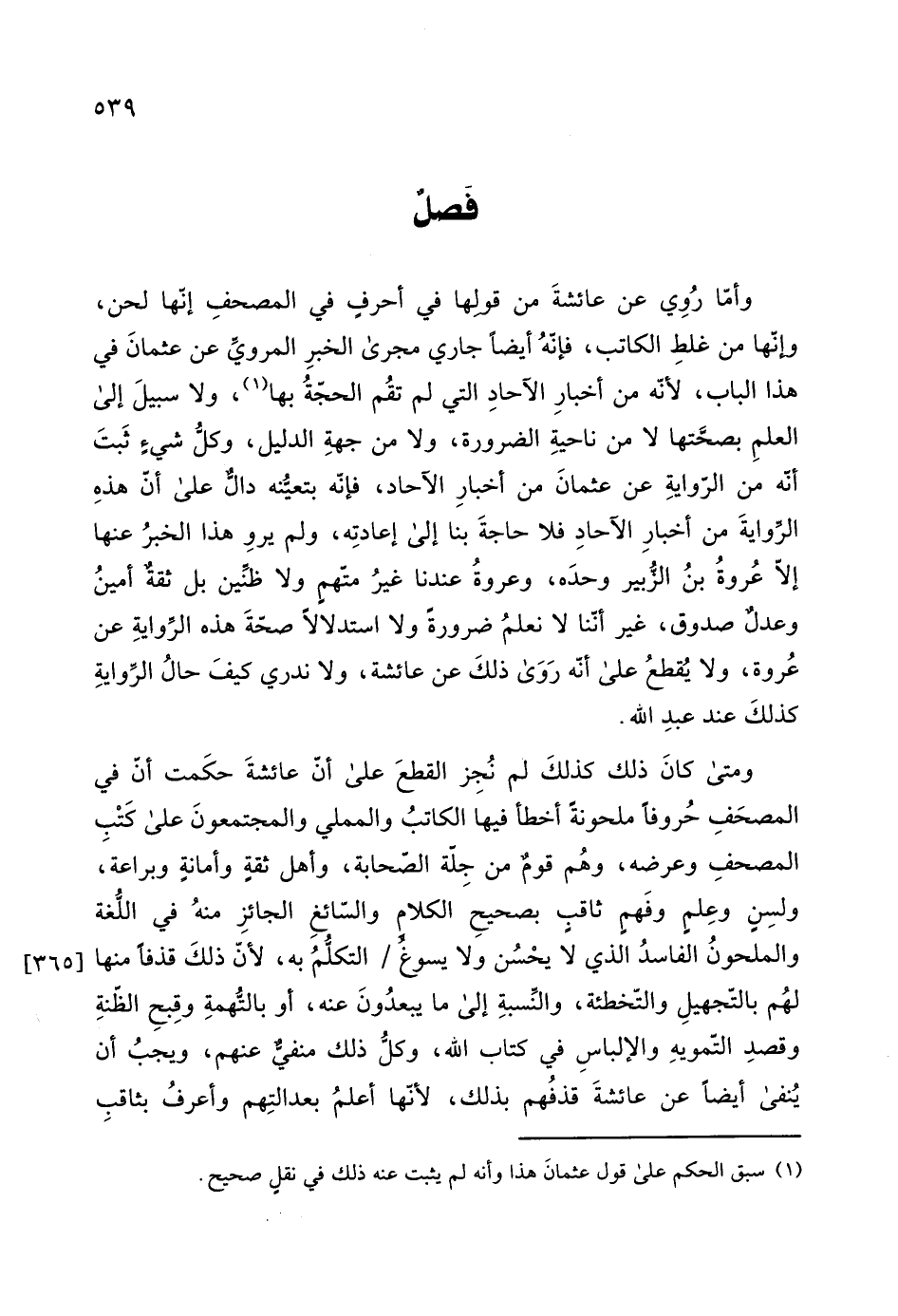 وأمَّا رُوِي عن عائشةَ من قولها في أحرفٍ في المصحفِ إنها لحن.