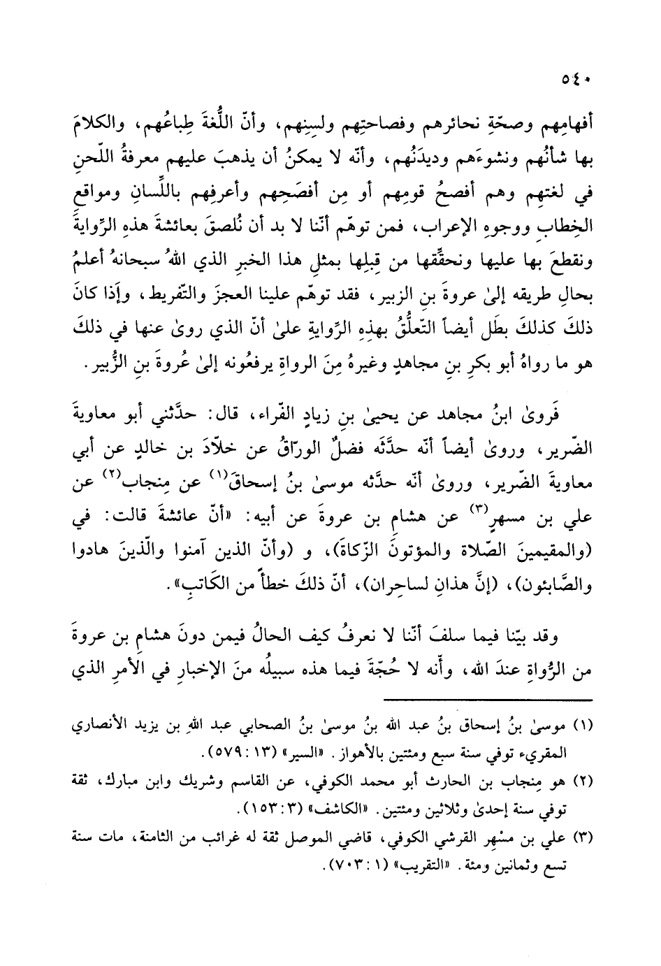 وقد بيّنا فيما سلفَ أننا لا نعرفُ كيف الحالُ فيمن دونَ هشامِ بن عروةَ