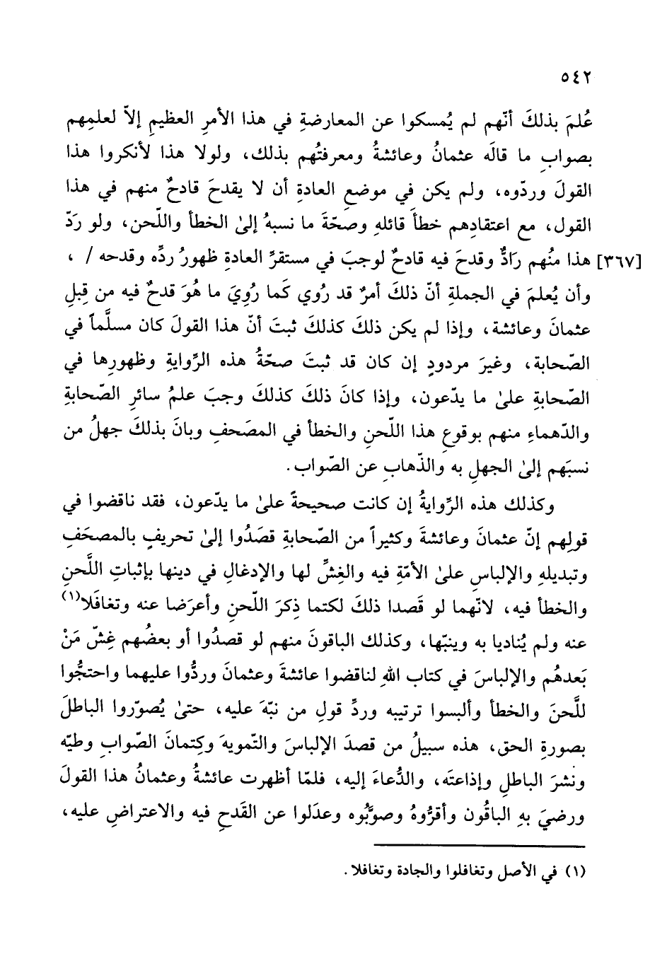قولهم إن عثمانَ وعائشةَ وكثيراً من الصَّحابة ِ قصَدُوا إلى تحريفٍ بالمصحَفِ