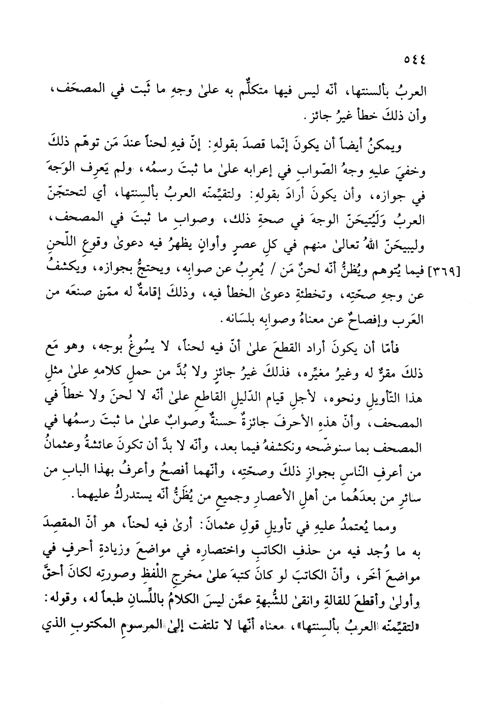 هذا التأويلِ ونحوه، لأجلِ قيام الدليلِ القاطعِ على أنه لا لحنَ ولا خطأَ في