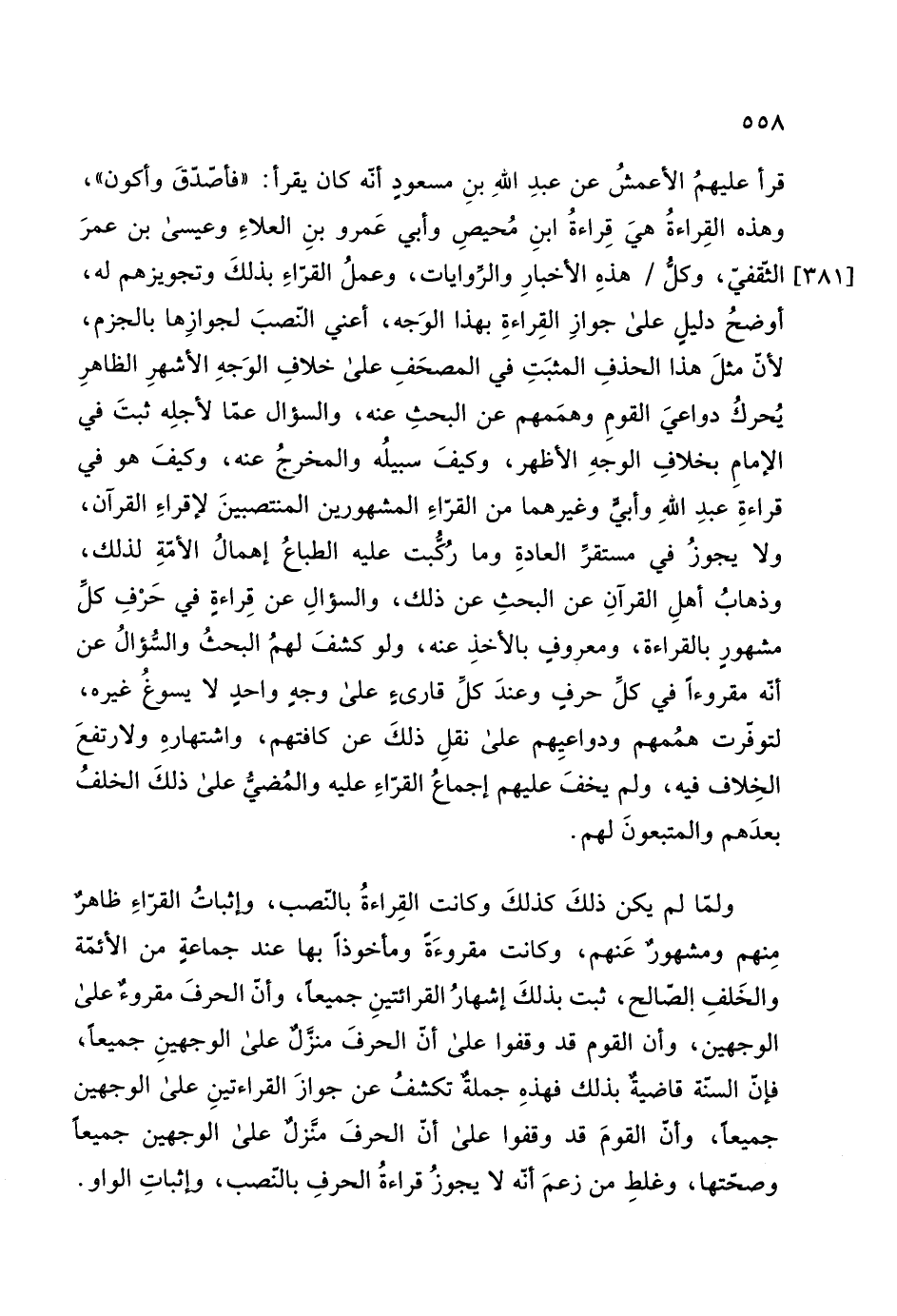وصحّتها، وغلطِ من زعمَ أنّه لا يجوزُ قراءةُ الحرفِ بالنّصب، وإثباتِ الواو.