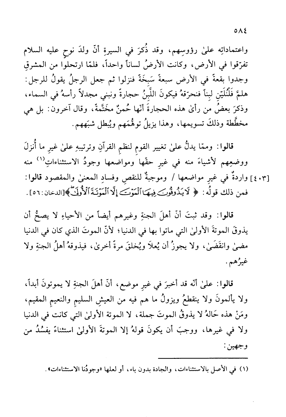 ولا في غيرها، ووجبَ أن يكونَ قولهُ إلا الموتةَ الأولى استثناءً يفسُدُ من