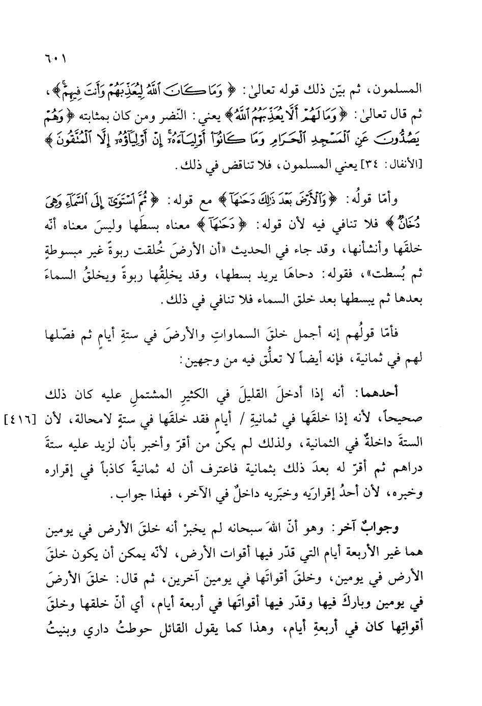 فأمّا قولُهم إنه أجمل خلقَ السماواتِ والأرضَ في ستةِ أيامٍ ثم فصَّلها