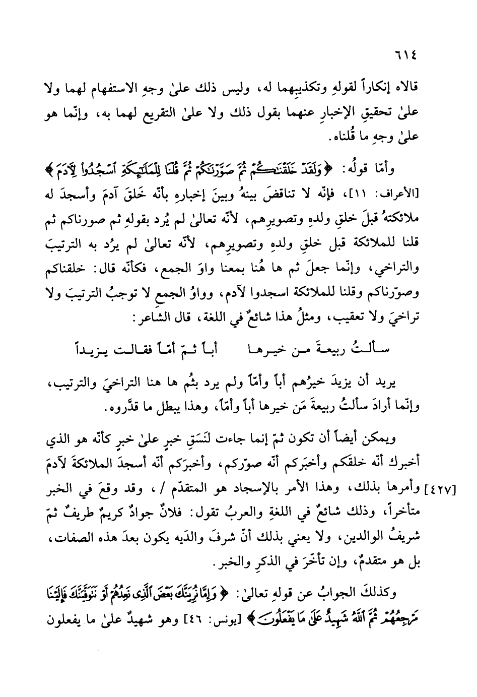 وصوّرناكم وقلنا للملائكة اسجدوا لآدم، وواوُ الجمعِ لا توجبُ الترتيبَ ولا تراخيَ ولا تعقيب، ومثلُ هذا شائع في اللغة، قال الشاعر: