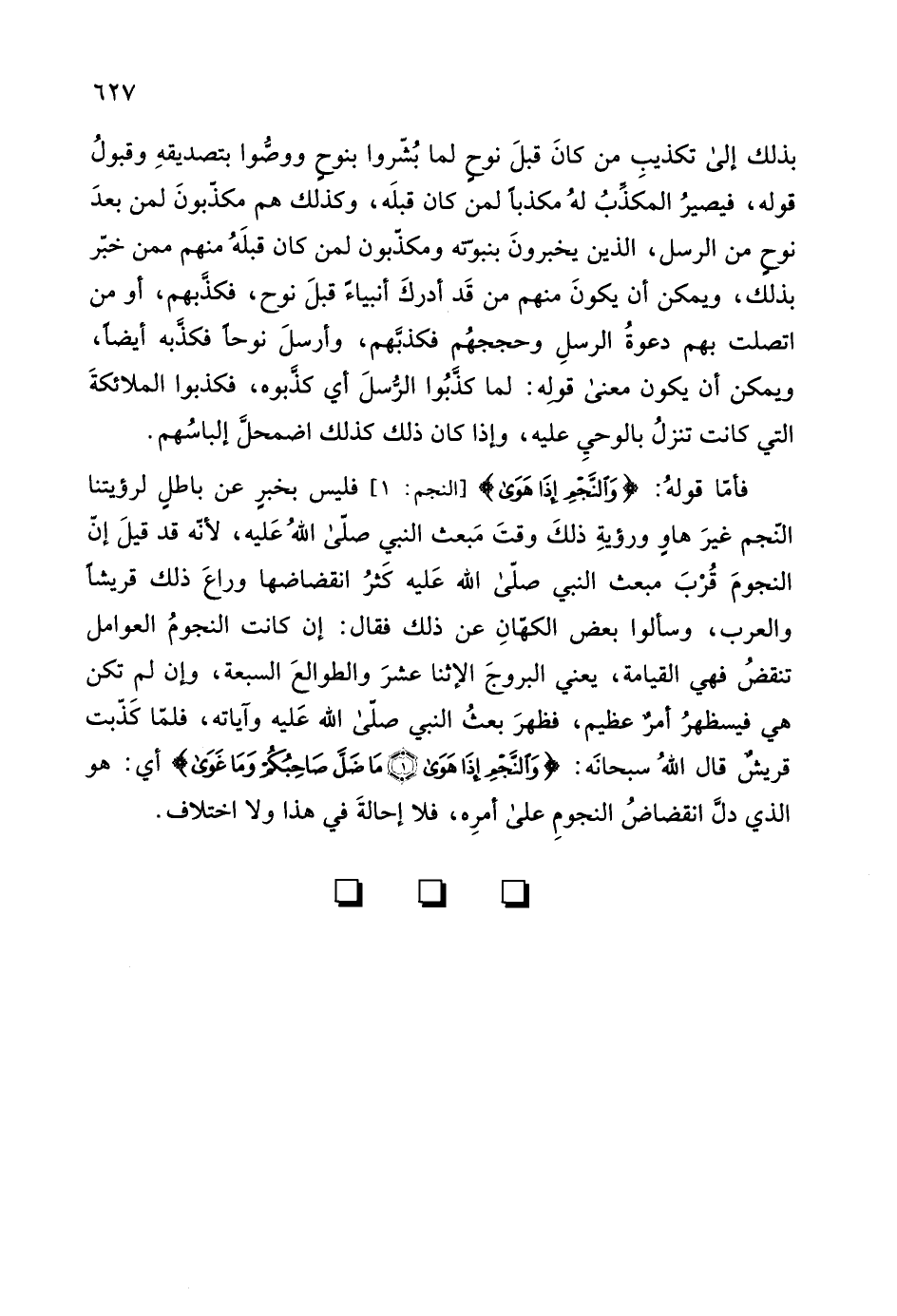 النجم غيرَ هاوٍ ورؤيةِ ذلكَ وقتَ مَبعث النبي صلّى اللهُ عَليه، لأنّه قد قيلَ إنّ