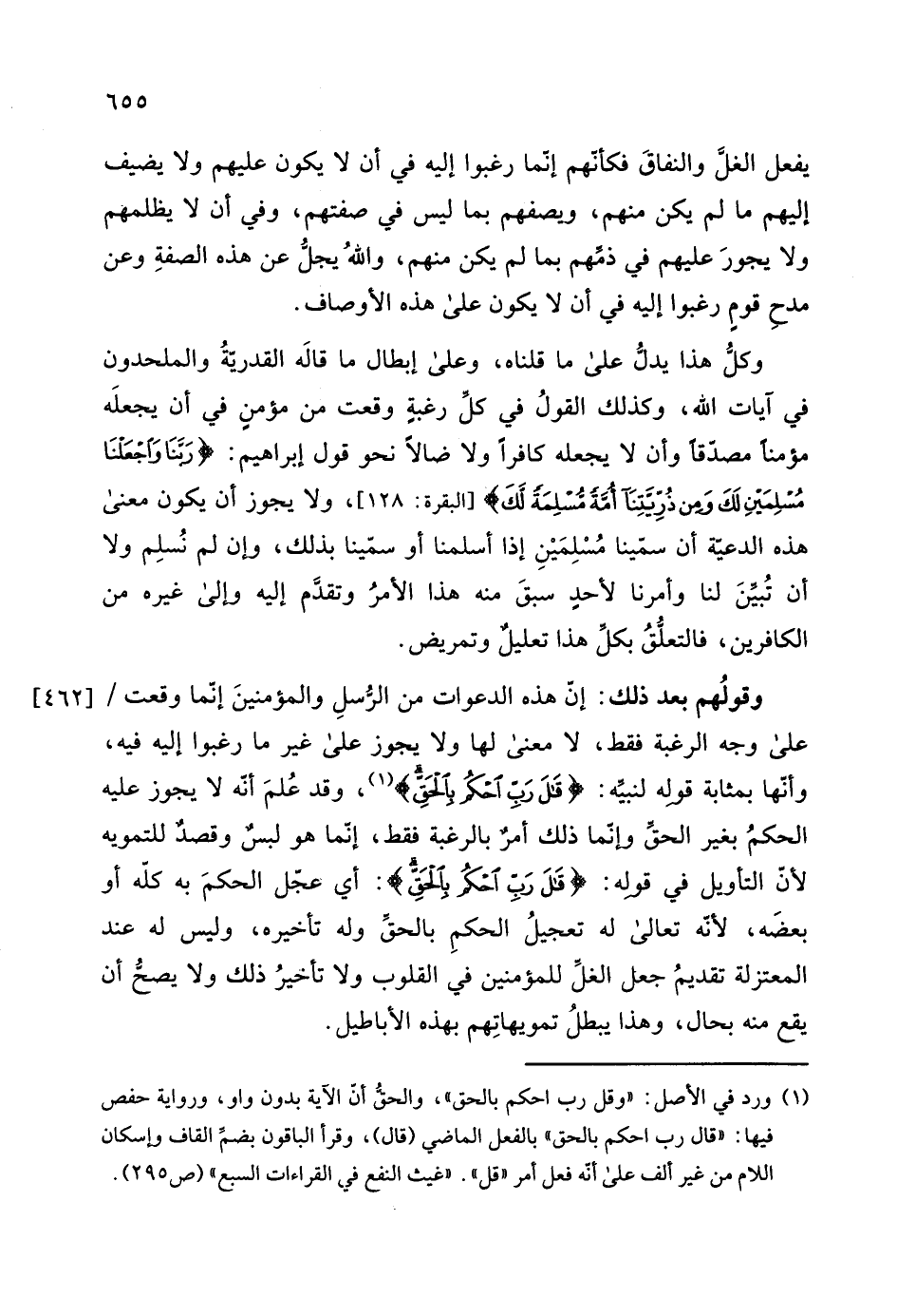 وكل هذا يدلُّ على ما قلناه، وعلى إبطال ما قالَه القدريةُ والملحدون