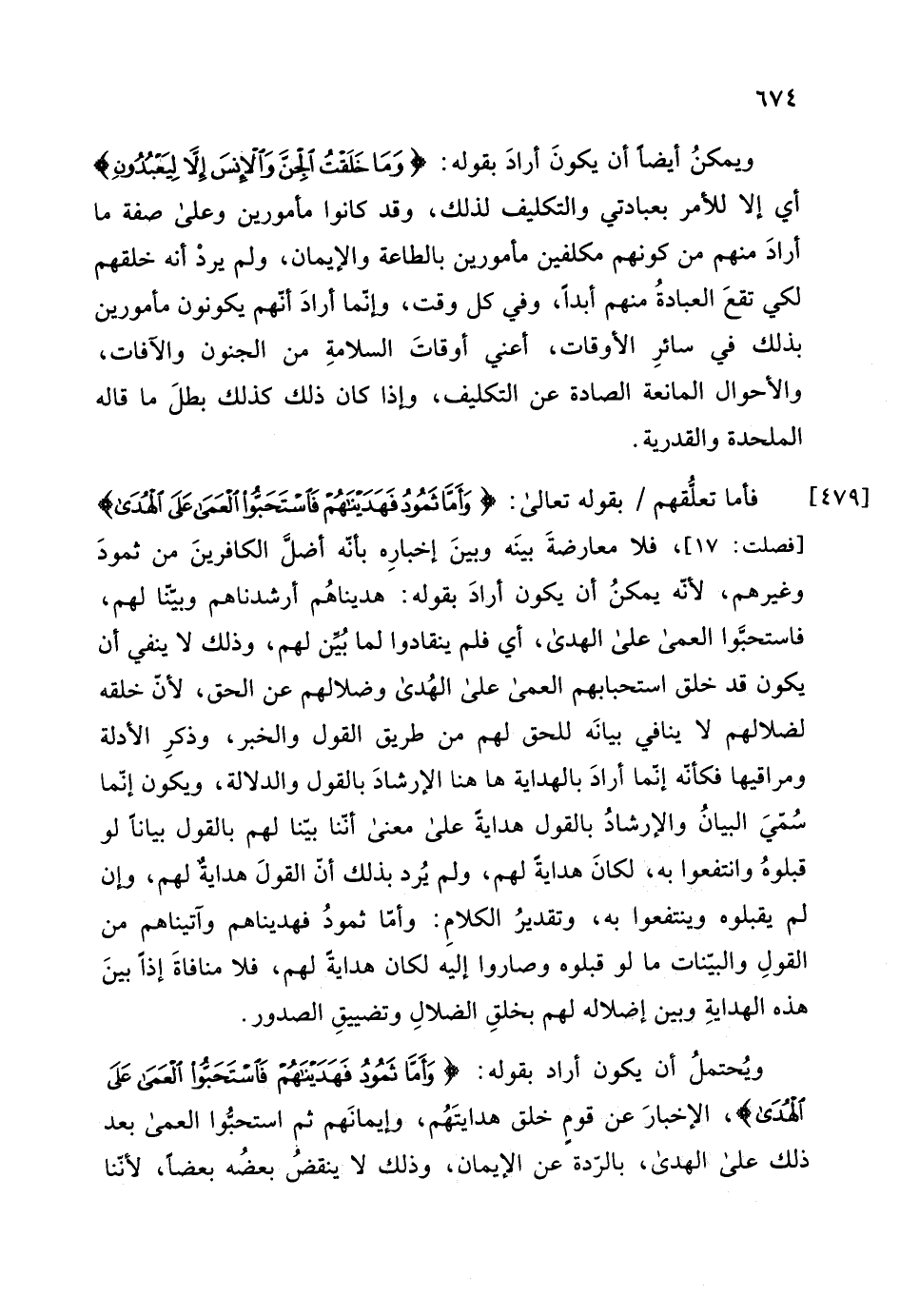 ويُحتملُ أن يكون أراد بقوله: (وَأَمَّا ثَمُودُ فَهَدَيْنَاهُمْ فَاسْتَحَبُّوا الْعَمَى عَلَى الْهُدَى) ، الإخبارَ عن قومٍ خلق هدايتَهُم، وإيمانَهم ثم استحبوا العمى بعد
