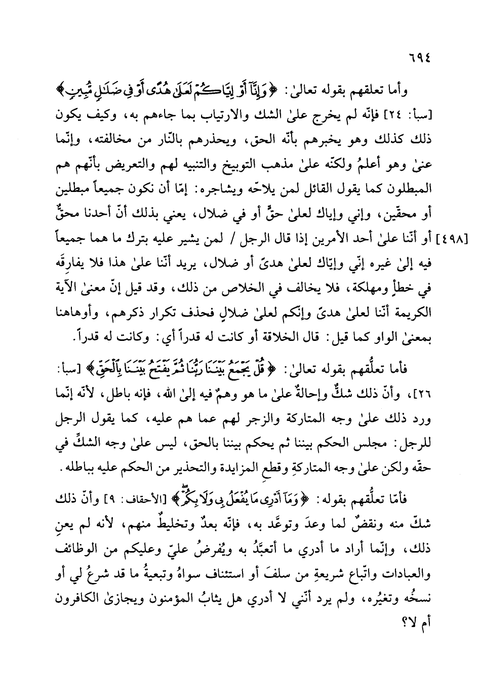 فأمَّا تعلُّقهم بقوله تعالى: (قُلْ يَجْمَعُ بَيْنَنَا رَبُّنَا ثُمَّ يَفْتَحُ بَيْنَنَا بِالْحَقِّ) ، وأن ذلك شك وإحالةٌ على ما هو وهمٌ فيه إلى الله، فإنه باطل، لأنه إنّما