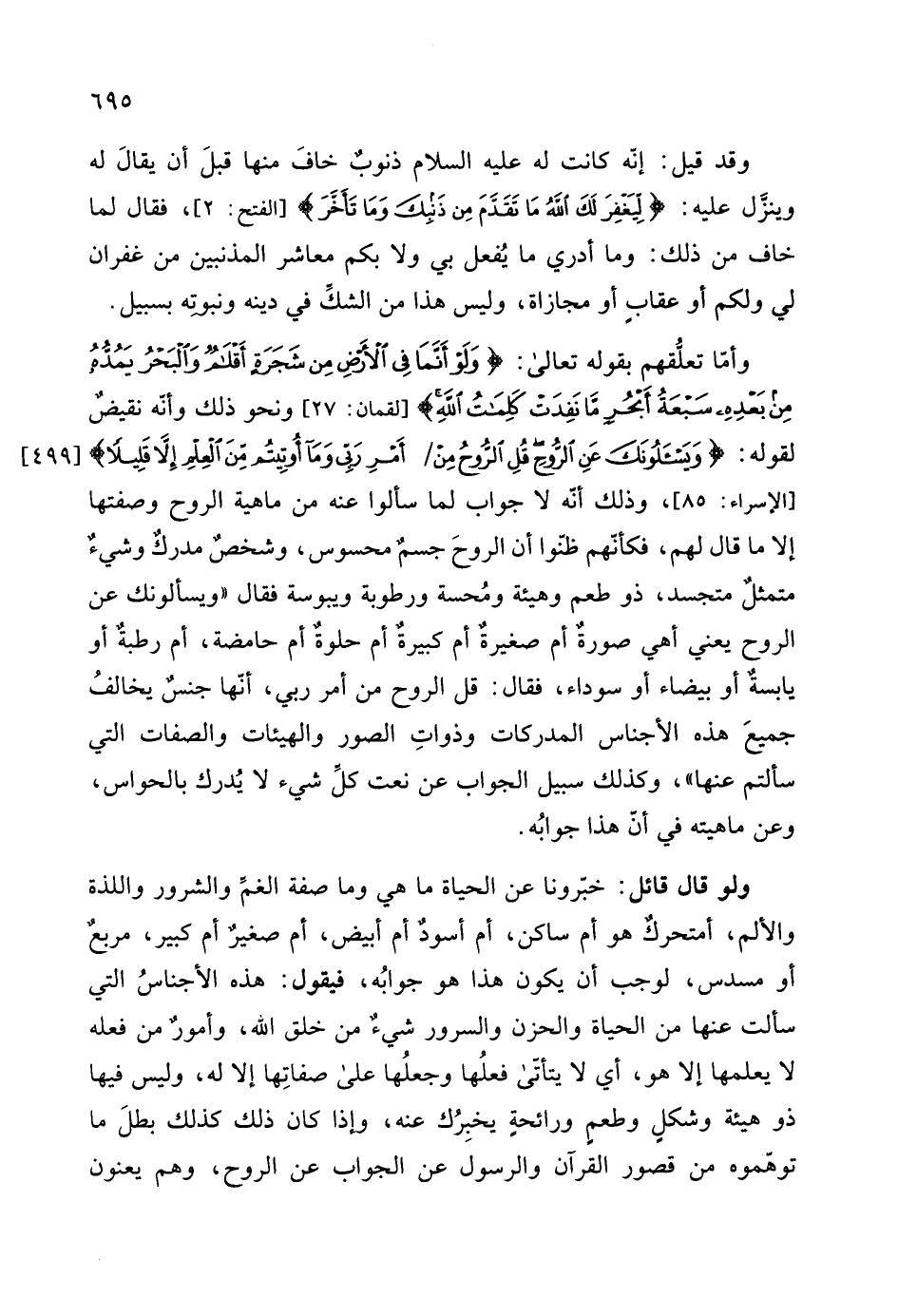 إلا ما قال لهم، فكأنم ظنوا أن الروحَ جسم محسوس، وشخص مدرك وشيء