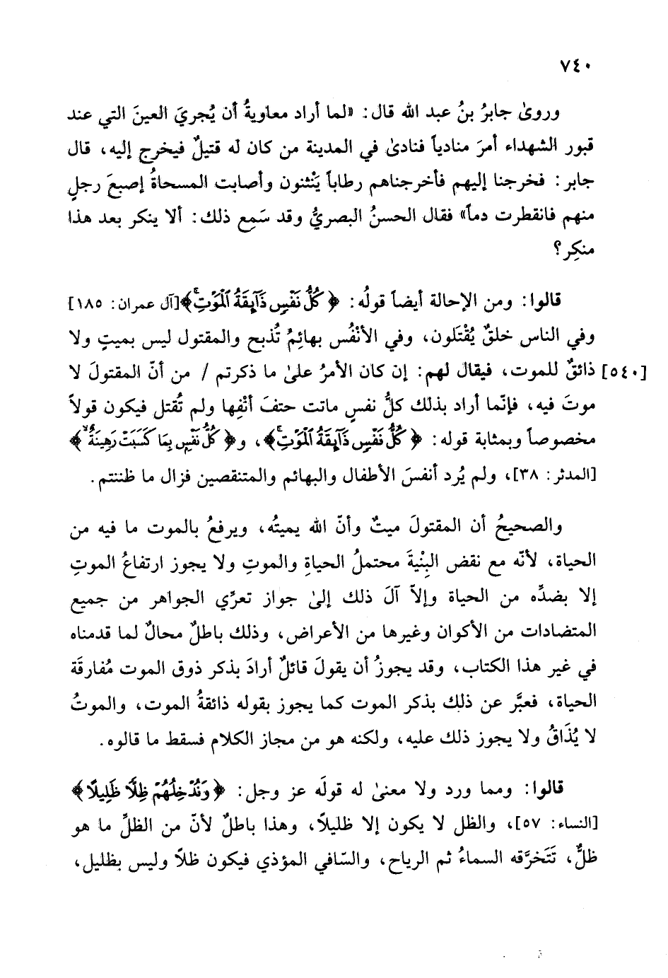 والصحيحُ أن المقتول ميت وأن الله يميتُه، ويرفعُ بالموت ما فيه من