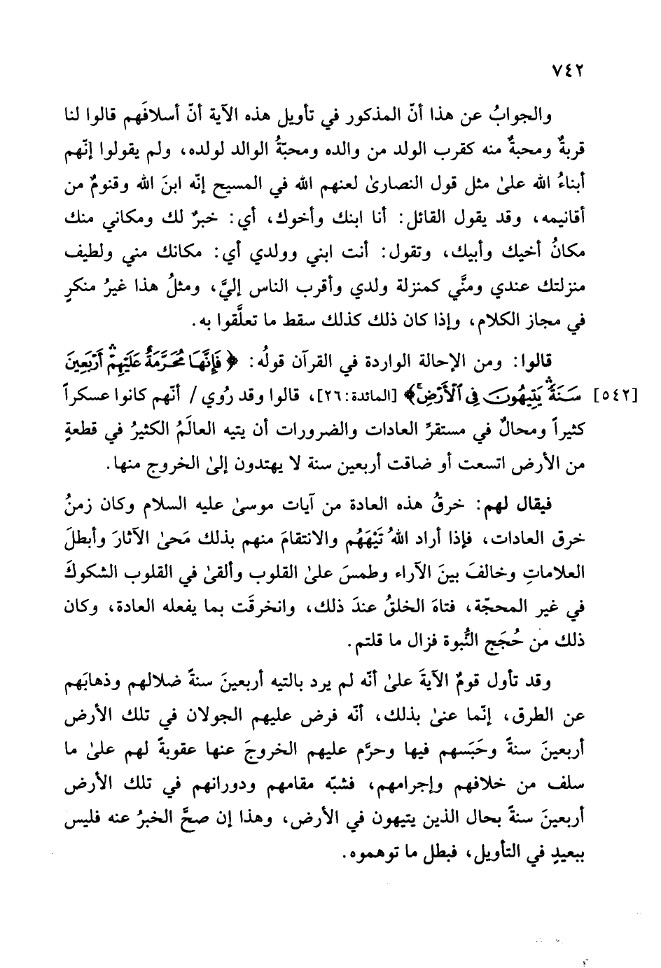 وقد تأول قوم الآية َ على أنه لم يرد بالتيه أربعينَ سنةً ضلالهم وذهابَهم