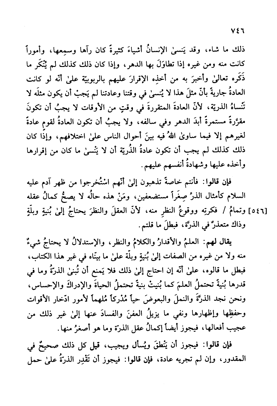 عجيب أفعالها، فيجوز أيضا إكمالُ عقل الذرة وما هو أصغرُ منها.