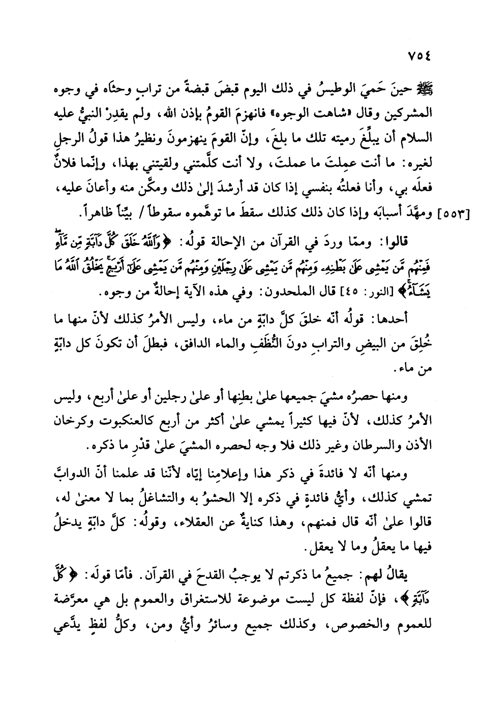فأمَّا قولَه: (كُلَّ دَابَّةٍ) ، فإن لفظة كل ليست موضوعة للاستغراق والعموم بل هي معرضة للعموم والخصوص، وكذلك جميع وسائرُ وأيُّ ومَن، وكل لفظِ يَدَّعي