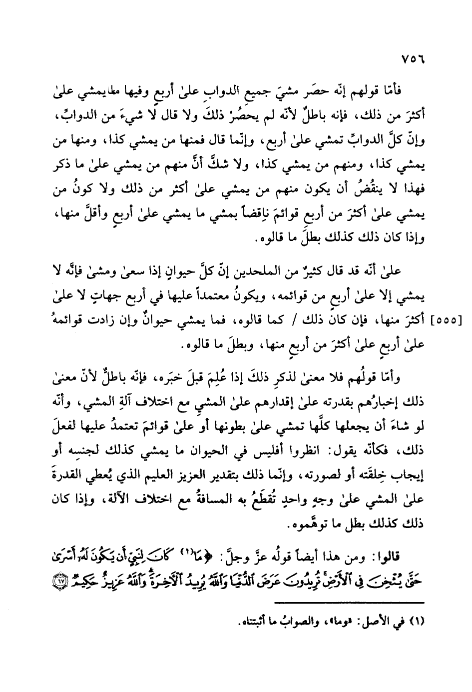 على أنه قد قال كثير من الملحدين إنَّ كل حيوانٍ إذا سعى ومشى فإنه لا