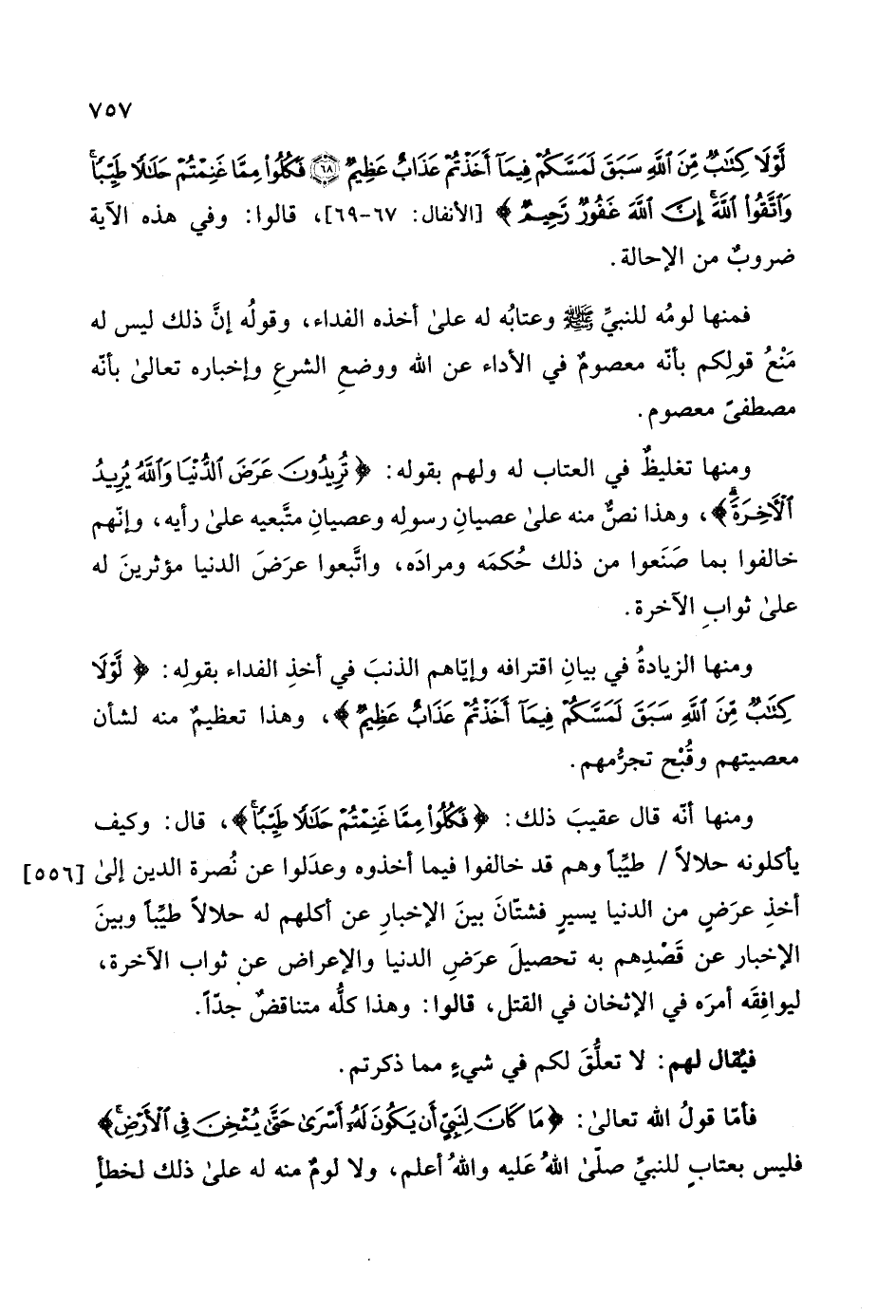 فأمَّا قولُ الله تعالى: (مَا كَانَ لِنَبِيٍّ أَنْ يَكُونَ لَهُ أَسْرَى حَتَّى يُثْخِنَ فِي الْأَرْضِ)
