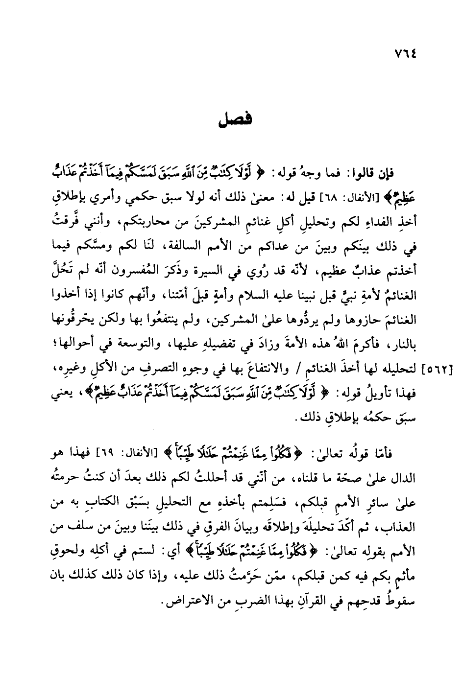 فإن قالوا: فما وجهُ قوله: لَوْلَا كِتَابٌ مِنَ اللَّهِ سَبَقَ لَمَسَّكُمْ فِيمَا أَخَذْتُمْ عَذَابٌ عَظِيمٌ (68) ؟