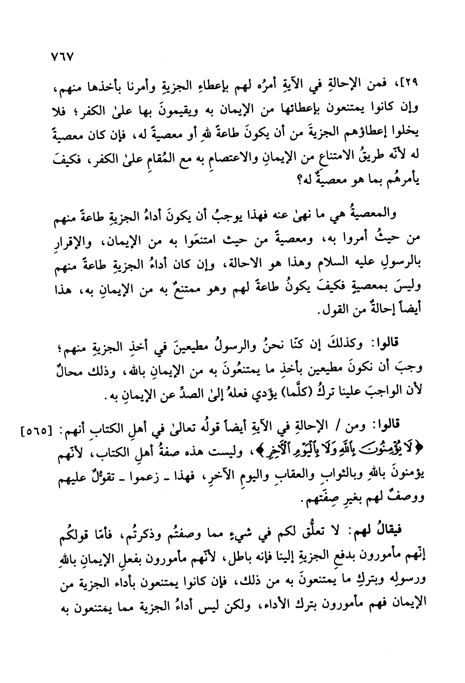 فمن الإحالةِ في الآيةِ أمرُه لهم بإعطاءِ الجزيةِ وأمرنا بأخذها منهم.
