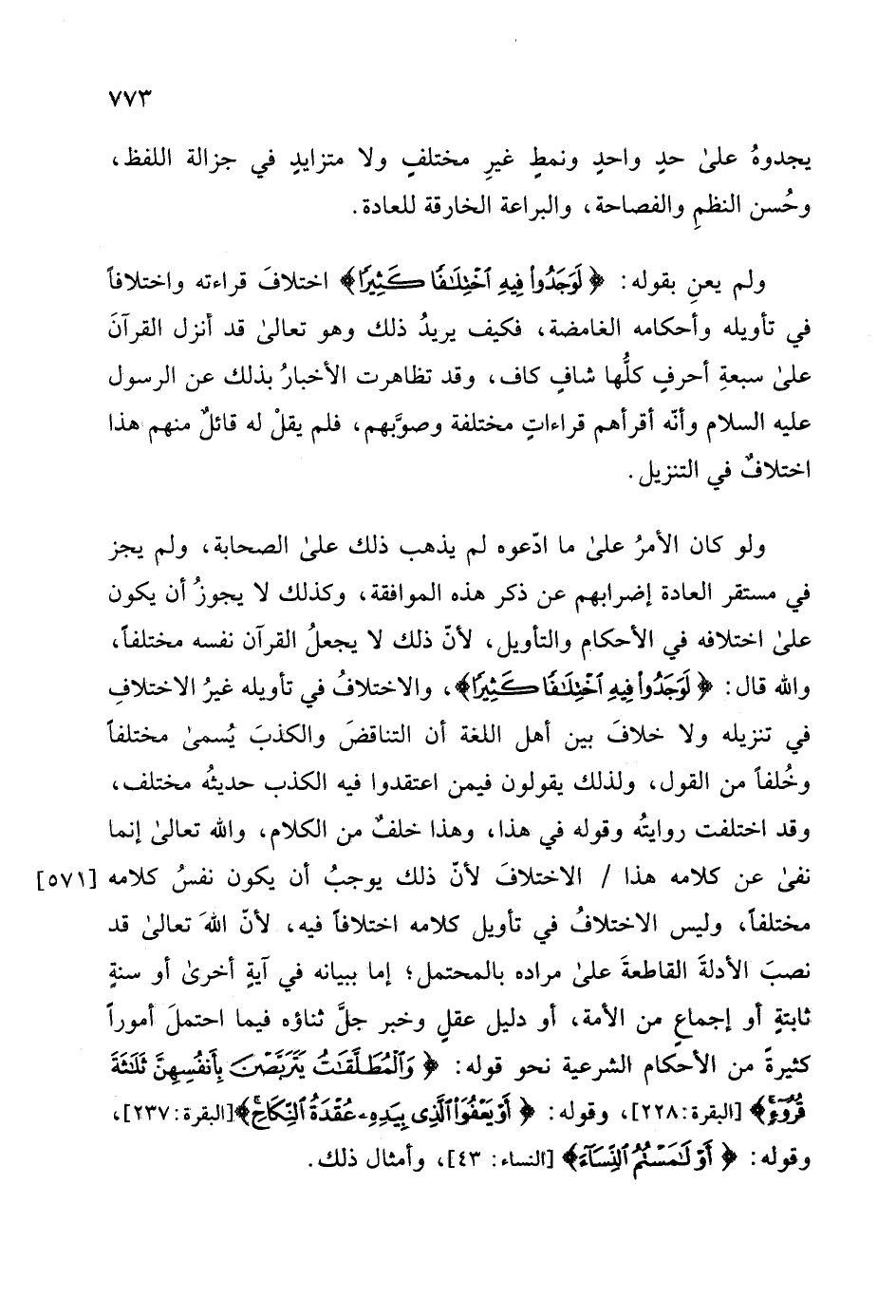 على اختلافه في الأحكام والتأويل، لأنّ ذلك لا يجعلُ القرآن نفسه مختلفاَ.
