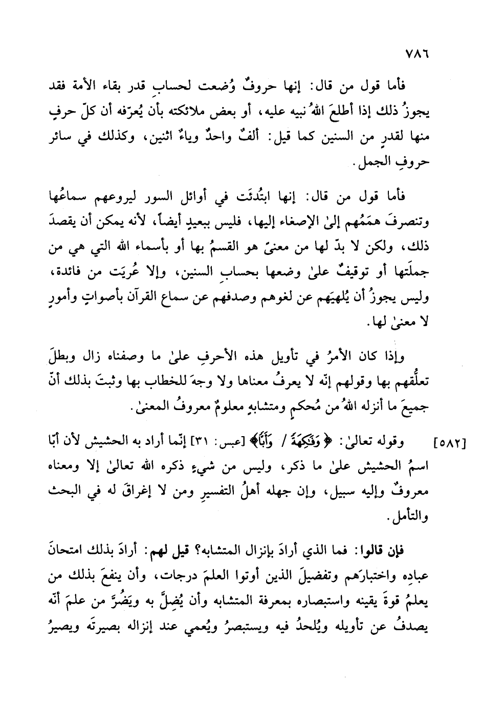تعلُّقهم بها وقولهم إنّه لا يعرفُ معناها ولا وجهَ للخطاب بها وثبتَ بذلك أن