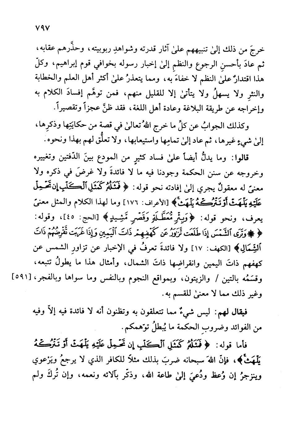 ثم خرجَ من ذلك إلى تنبيههم على آثار قدرته وشواهدِ ربوبيته، وحذرهم عقابه، ثم عادَ بأحسنِ الرجوع والنظمِ إلى إخبار رسوله بخوافي قوم إبراهيم، وكل هذا اقتدارٌ على النظم لا خفاءَ به، ومما يتعذرُ على أكثر أهل العلم والخطابة والنثرِ ولا يسهلُ ولا يتأتى إلا للقليل منهم، فمن توهم إفسادَ الكلام به وإخراجه عن طريقة البلاغة وعادة أهل اللغة، فقد ظنَّ عجزا وتقصيرا.