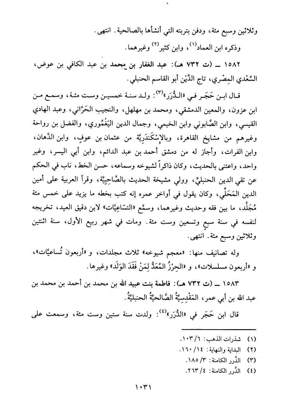 1582 - (ت 732 هـ): عبد الغفار بن مجمد بن عبد الكافي بن عوض، السَّعْدي المِصْري، تاج الدِّيْن أبو القاسم الحنبلي.