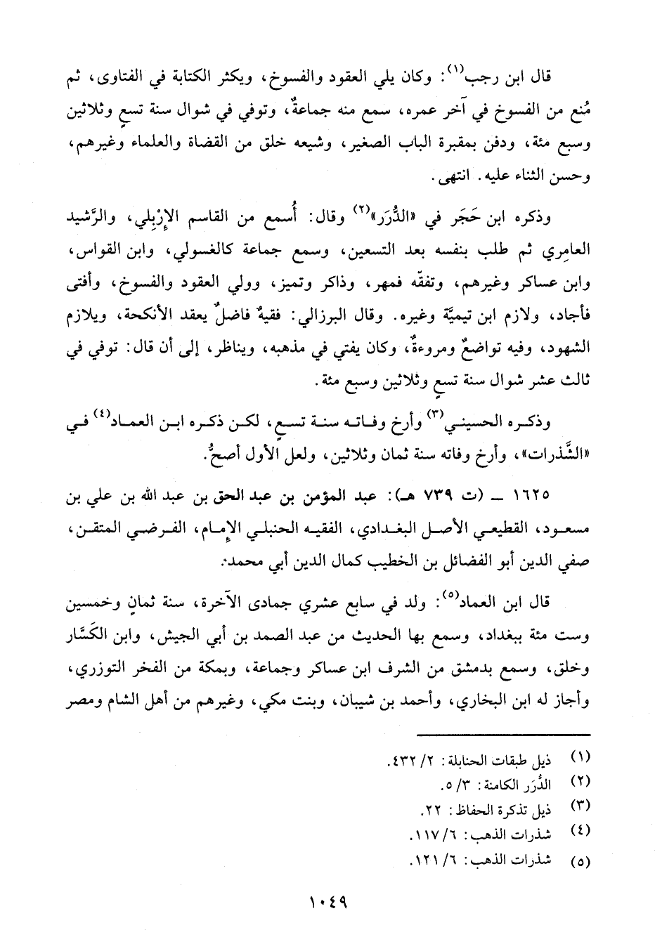 1625 - (ت 739 هـ): عبد المؤمن بن عبد الحق بن عبد الله بن علي بن مسعود، القطيعي الأصل البغدادي، الفقيه الحنبلي الإمام، الفرضي المتقن، صفي الدين أبو الفضائل بن الخطيب كمال الدين أبي محمد.