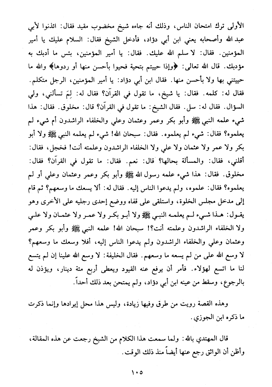قال المهتدي بالله: ولما سمعت هذا الكلام من الشيخ رجعت عن هذه المقالة، وأظن أن الواثق رجع عنها أيضًا منذ ذلك الوقت.