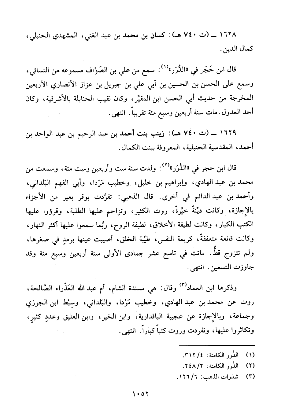 1629 - (ت 740 هـ): زينب بنت أحمد بن عبد الرحيم بن عبد الواحد بن أحمد، المقدسية الحنبلية، المعروفة ببنت الكمال.