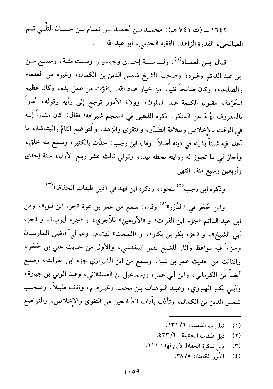 1642 - (ت 741 هـ): محمد بن أحمد بن تمام بن حسان التلِّي ثم الصالحي، القدوة الزاهد، الفقيه الحنبلي، أبو عبد الله.