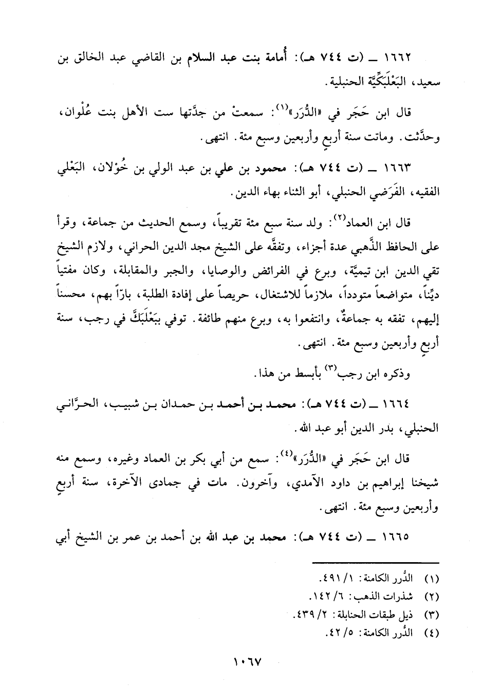 1662 - (ت 744 هـ): أُمامة بنت عبد السلام بن القاضي عبد الخالق بن سعيد، البَعْلَبَكِّيَّة الحنبلية.