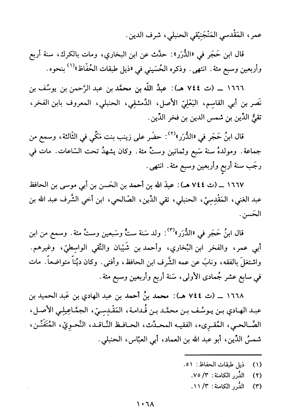 1668 - (ت 744 هـ): محمد بنُ أحمد بن عبد الهادي بن عَبد الحميد بن عبد الهادي بن يوسُف ين محمَّد بن قُدامة، المَقْدِسِيّ، الجمَّاعِيلِي الأصل، الصَّالحي، المُقرِئ، الفقيه المحدِّث، الحافظ النَّاقد، النَّحوِيّ، المُتَفَنِّن، شمسُ الدِّين، أبو عبد الله بن العماد، أبي العبَّاس، الحنبلي.