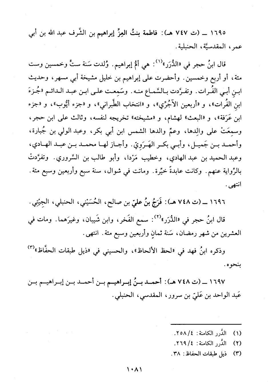1697 - (ت 748 هـ): أحمد بنُ إبراهيم بن أحمد بن إبراهيم بن عَبد الواحد بن عَليّ بن سرور، المقدسي، الحنبلي.