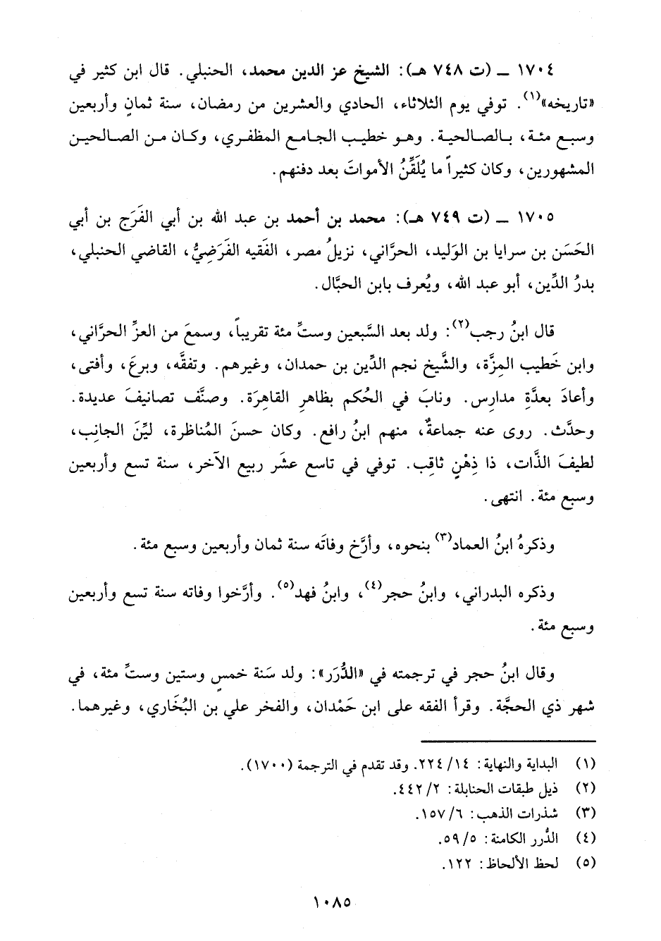 1705 - (ت 749 هـ): محمد بن أحمد بن عبد الله بن أبي الفَرَج بن أبي الحَسَن بن سرايا بن الوَليد، الحرَّاني، نزيلُ مصر، الفَقيه الفَرَضِيُّ، القاضي الحنبلي، بدرُ الدِّين، أبو عبد الله، ويُعرف بابن الحبَّال.