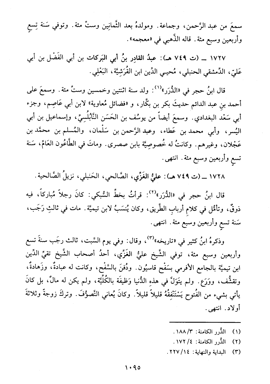 1727 - (ت 749 هـ): عبدُ القادِر بنُ أبي البَركات بن أبي الفَضْل بن أبي عَليّ، الدِّمشقي الحنبلي، مُحيي الدِّين ابن القُرَشِيَّة، البَعْلِي.