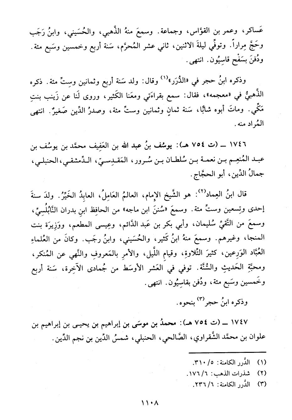 1747 - (ت 754 هـ): محمدُ بن موسَى بن إبراهيم بن يحيى بن إبراهيم بن علوان بن مُحَمَّد الشَّقراوي، الصَّالحي، الحنبلي، شمسُ الدِّين بن نجم الدَّين.