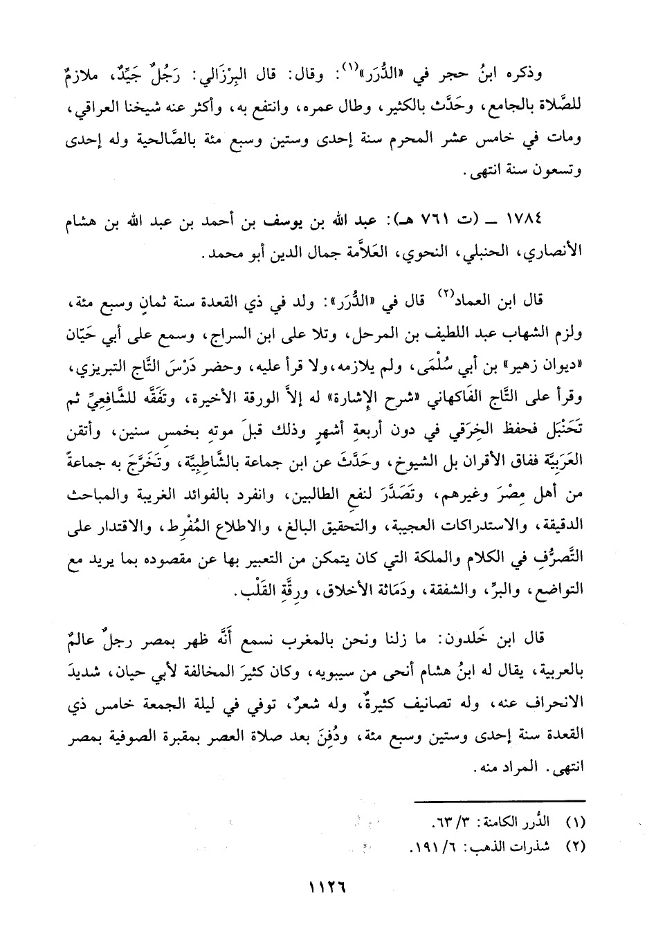 1784 - (ت 761 هـ): عبد الله بن يوسف بن أَحْمد بن عبد الله بن هشام الأنصاري، الحنبلي، النحوي، العَلَّامة جمال الدين أبو محمَّد.