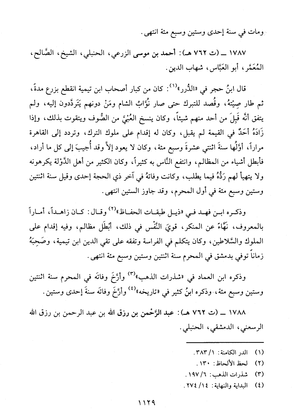 1787 - (ت 762 هـ): أَحْمد بن موسى الزرعي، الحنبلي، الشيخ، الصَّالح، المُعَمَّر، أبو العَبَّاس، شهاب الدين.