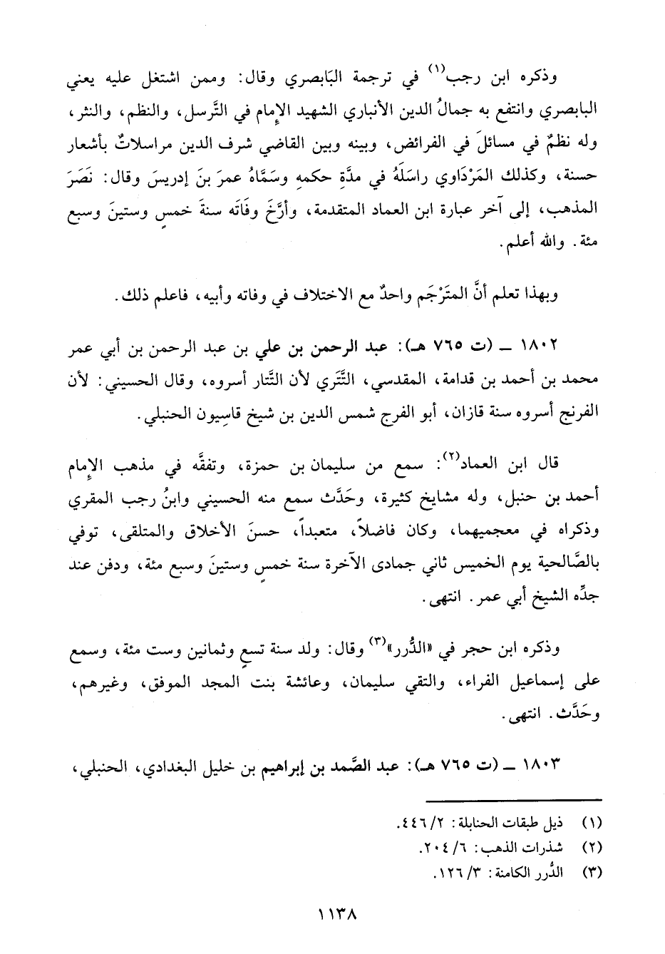 1803 - (ت 765 هـ): عبد الصَّمد بن إبراهيم بن خليل البغدادي، الحنبلي،