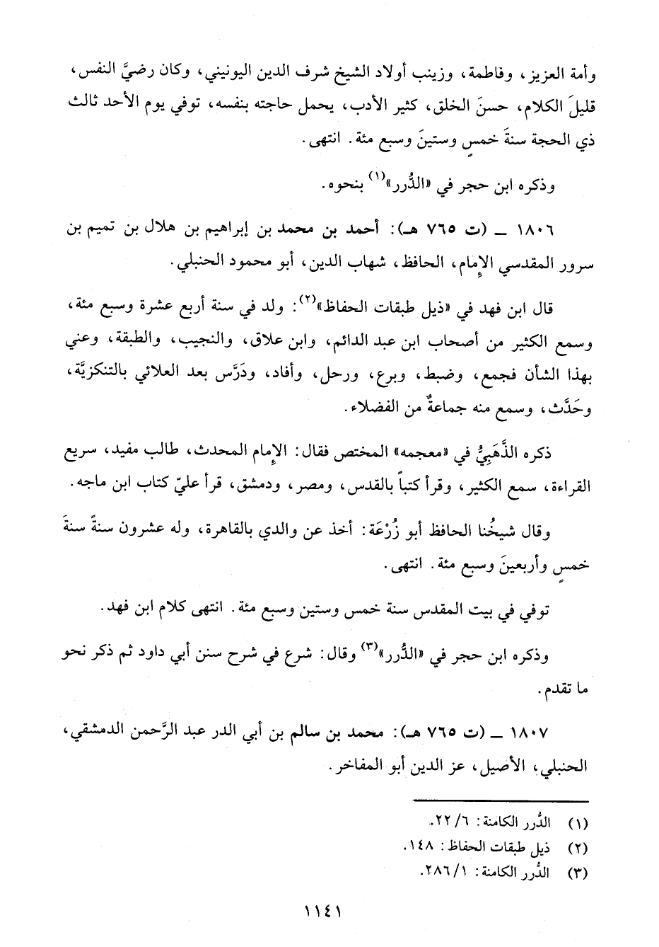1806 - (ت 765 هـ): أَحْمد بن محمَّد بن إبراهيم بن هلال بن تميم بن سرور المقدسيّ الإِمام، الحافظ، شهاب الدين، أبو محمود الحنبلي.