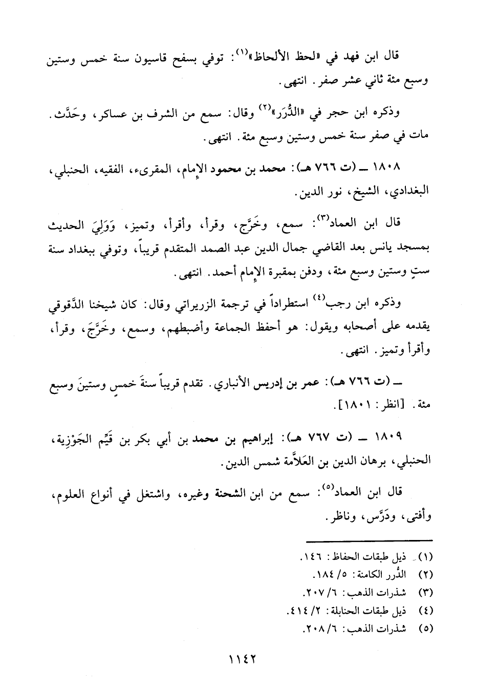 1808 - (ت 766 هـ): محمَّد بن محمود الإِمام، المقرئ، الفقيه، الحنبلي، البغدادي، الشيخ، نور الدين.