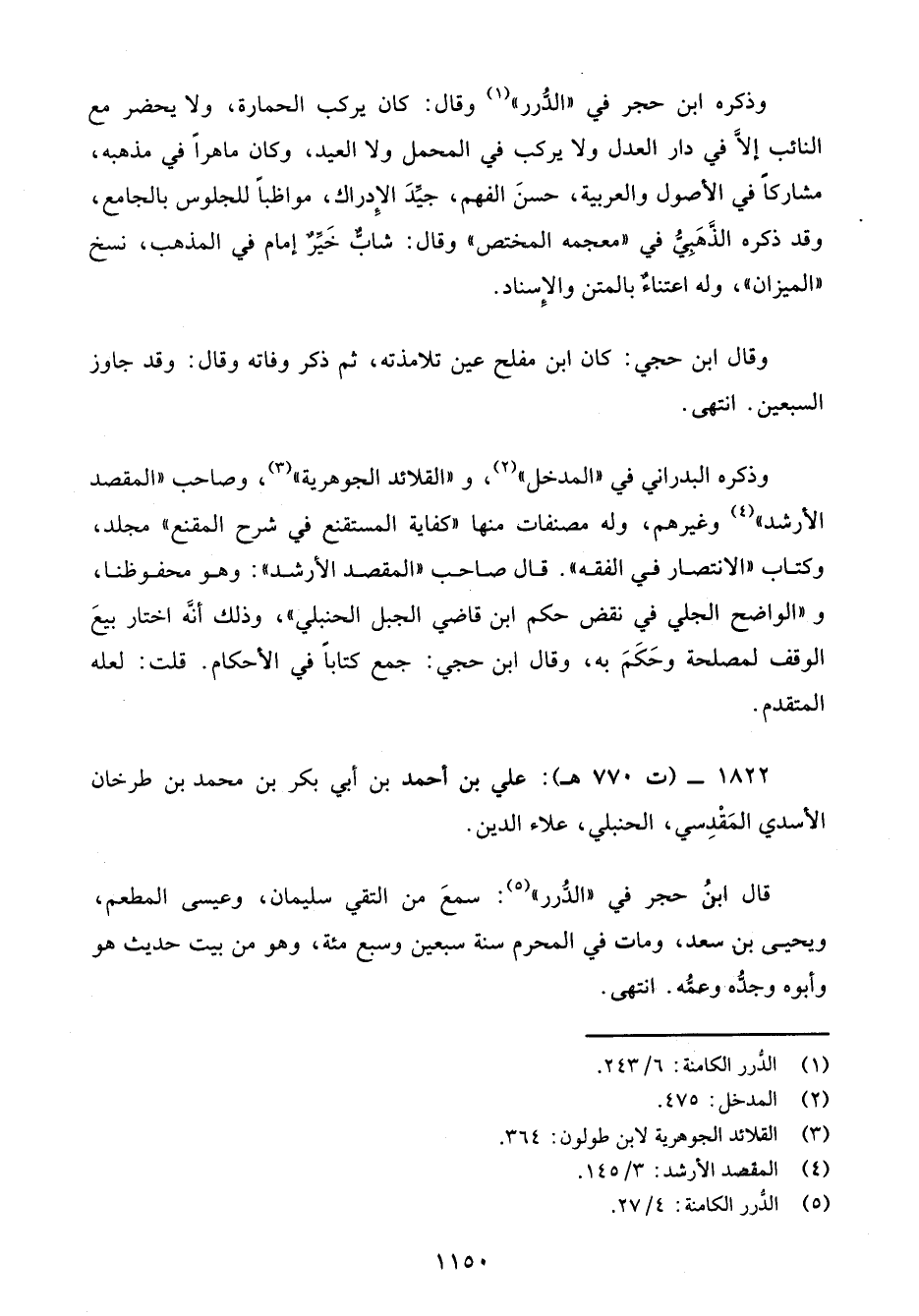 1822 - (ت 770 هـ): علي بن أَحْمد بن أبي بكر بن مُحَمَّد بن طرخان الأسدي المَقْدِسي، الحنبلي، علاء الدين.