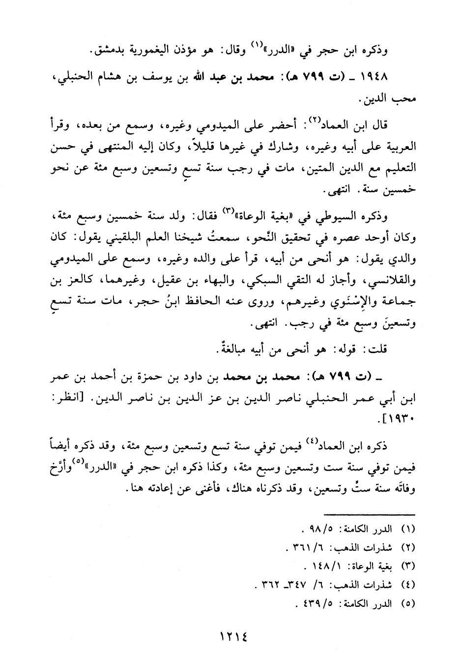 1948 - (ت 799 هـ): محمد بن عبد الله بن يوسف بن هشام الحنبلي، محب الدين.