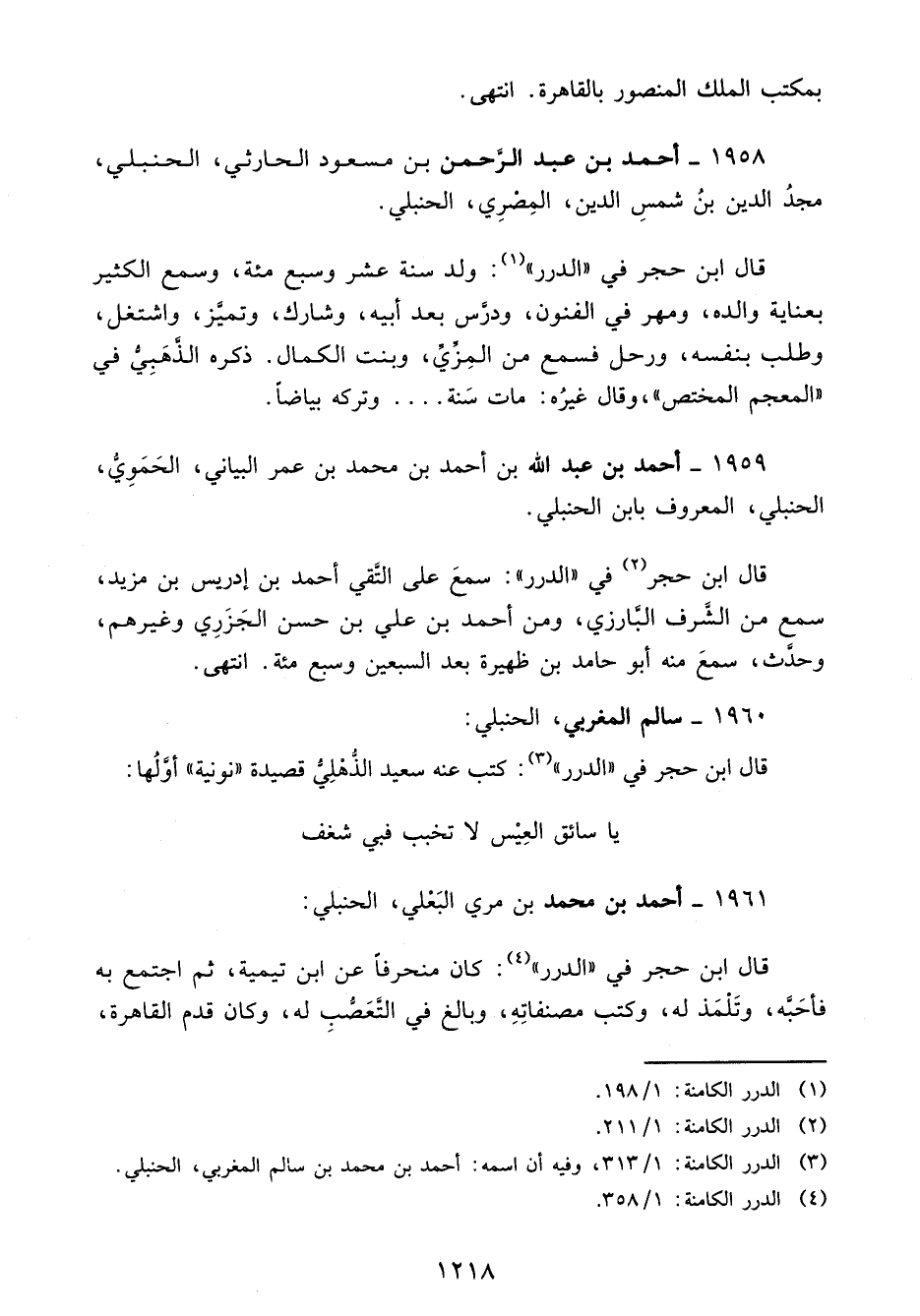 1959 - أحمد بن عبد الله بن أحمد بن محمد بن عمر البياني، الحَمَوِيُّ، الحنبلي، المعروف بابن الحنبلي.