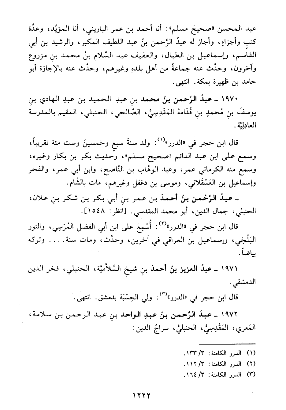 1970 - عبدُ الرحمن بنُ محمد بنِ عبدِ الحميد بن عبدِ الهادي بنِ يوسفَ بنِ مُحمدِ بنِ قُدَامةَ المَقْدِسِيُّ، الصَّالحي، الحنبلي، المقيم بالمدرسة العادِلِيَّة.