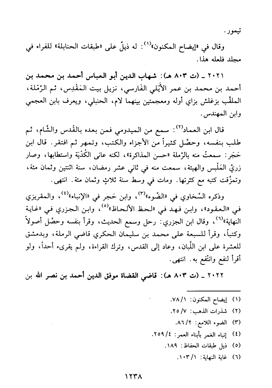 2022 - (ت 803 هـ): قاضي القضاة موفق الدين أحمد بن نصر الله بن