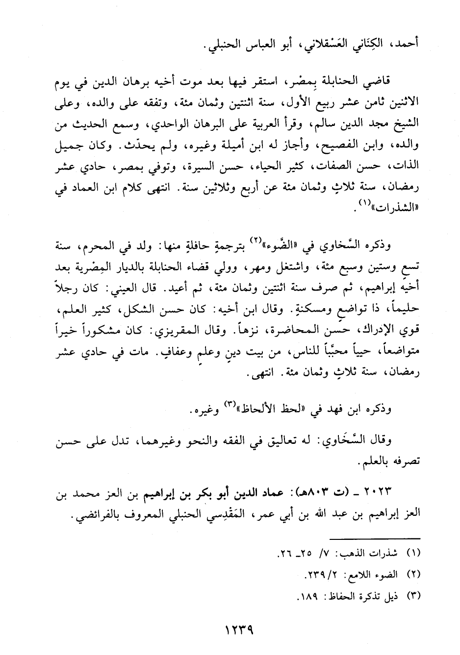 2023 - (ت 803 هـ): عماد الدين أبو بكر بن إبراهيم بن العز محمد بن العز إبراهيم بن عبد الله بن أبي عمر، المَقْدِسي الحنبلي المعروف بالفرائضي.